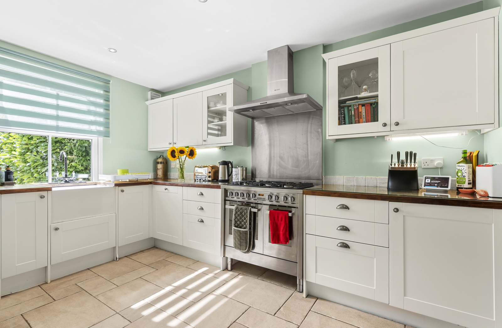 Se você estiver com vontade de cozinhar, encontrará tudo o que precisa na extensa cozinha bem equipada para preparar uma refeição deliciosa, incluindo um fogão de forno duplo de 5 anéis, eletrodomésticos Bosch embutidos sob o balcão.
