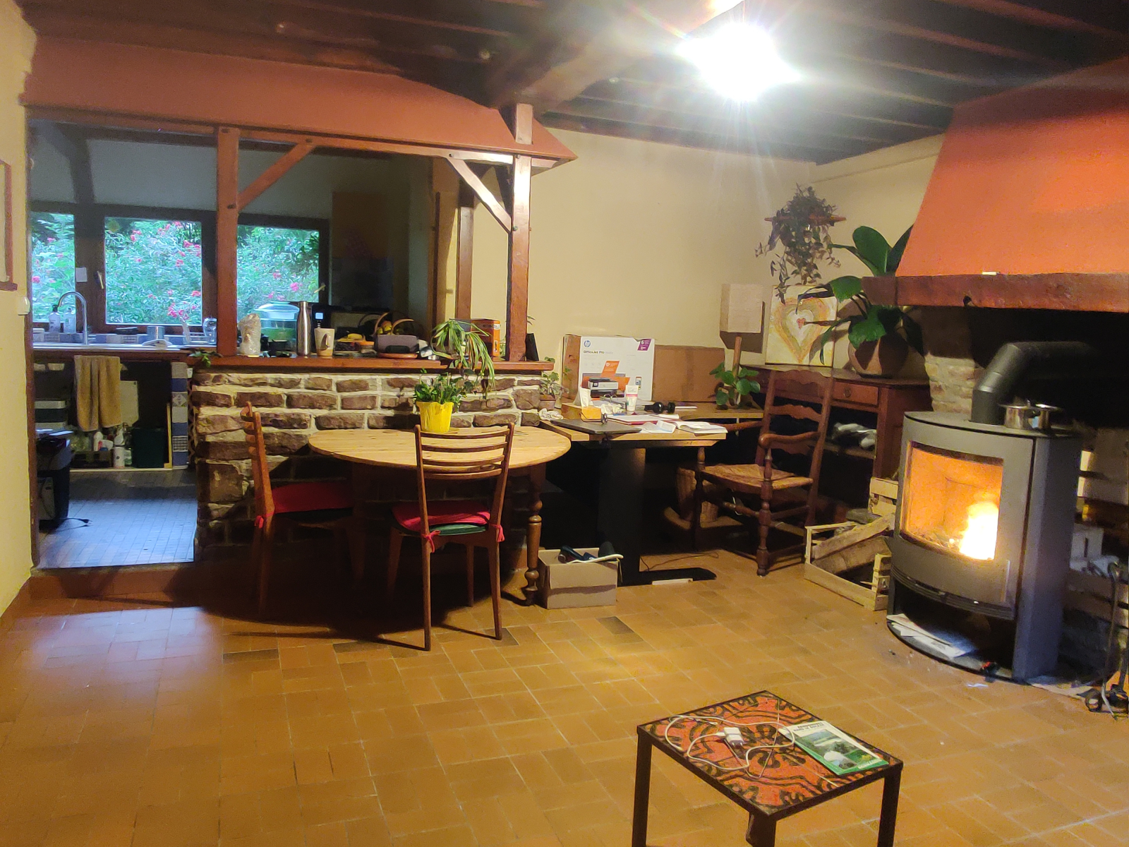 1 cozinha aberta para a sala de jantar (com fogão a lenha)