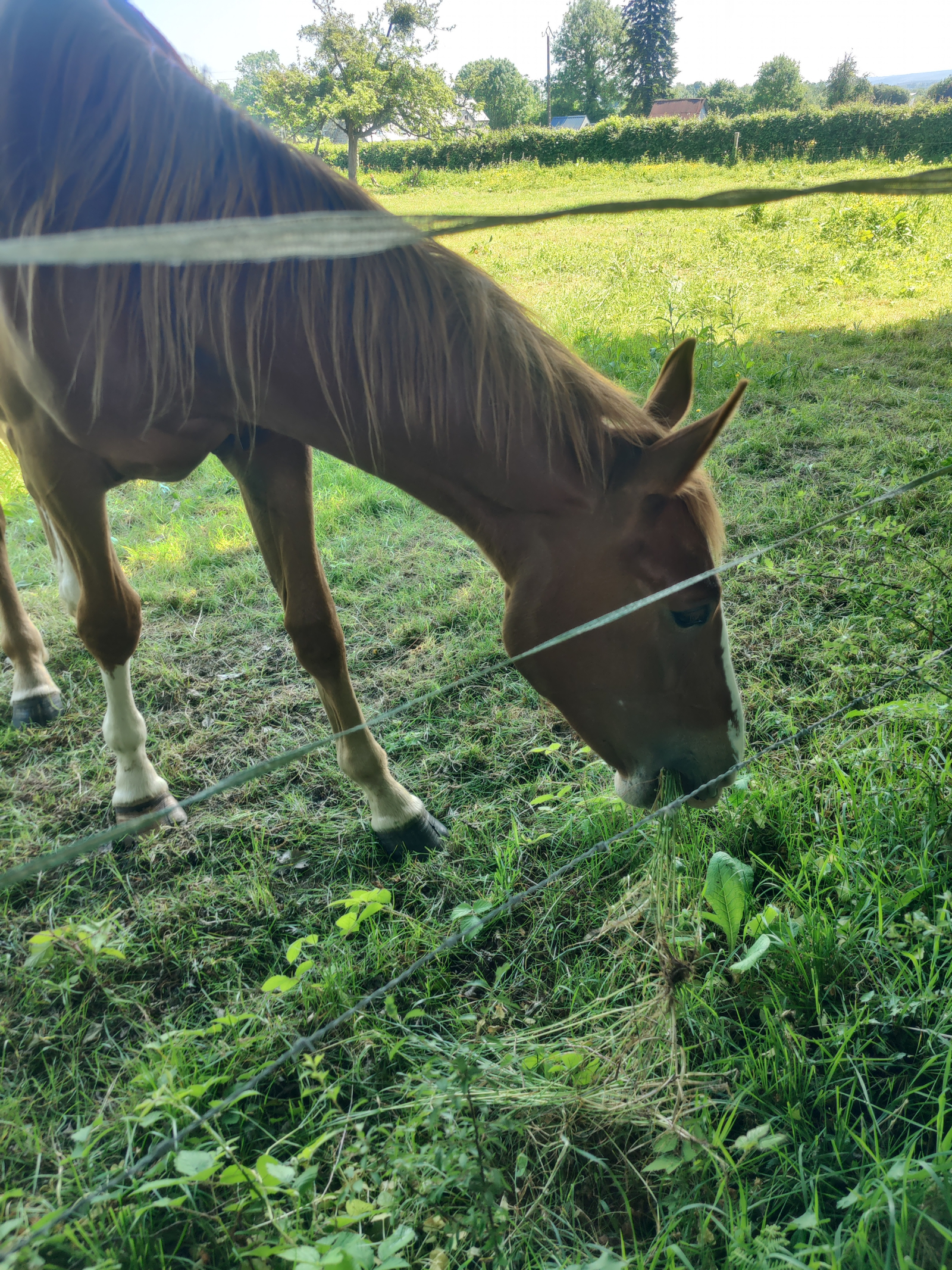 A casa está localizada no coração de uma pensão de cavalos e minha filha, apaixonada por cavalos, podia vê-los todas as manhãs e até cuidar deles graças à gentileza do vizinho e dos donos dos cavalos.
