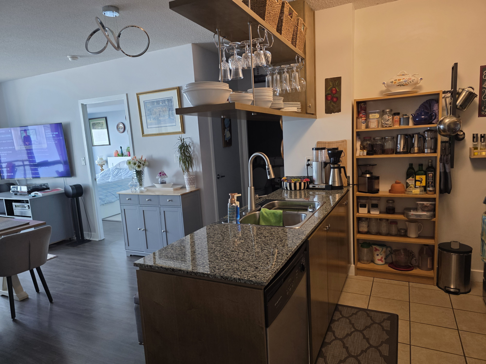 Com 780 pés quadrados, nossa casa é adequada para estadias de longo prazo para 2 pessoas. Temos portaria 24 horas, acesso FOB ao prédio, elevadores e uma vaga de garagem incluída.