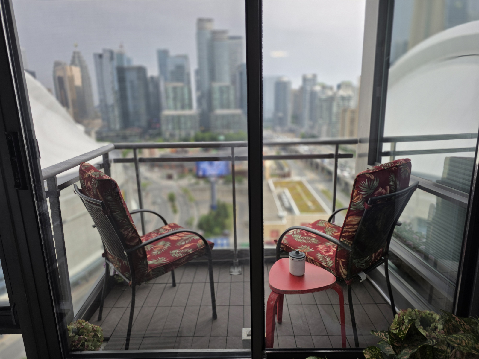 Temos uma exposição leste, com vista para o Rogers Centre, CN Tower e a orla marítima, incluindo as ilhas de Toronto.