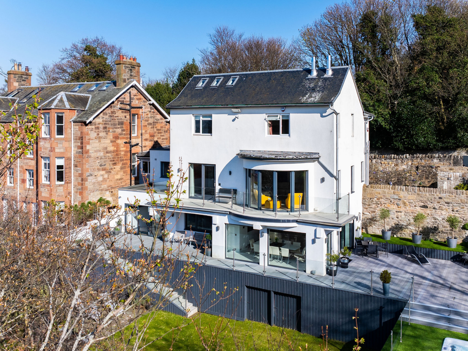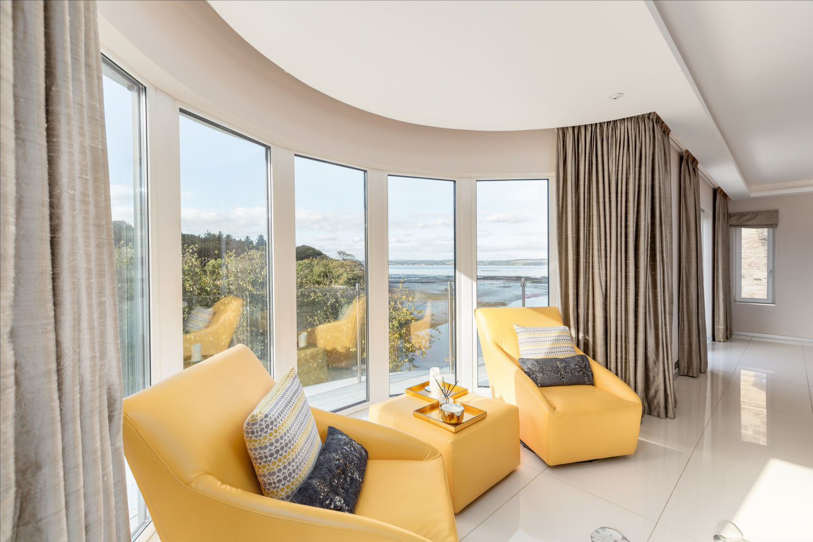 Casa privada de luxo, de alta tecnologia, com vista para o Firth of Forth. a dois minutos da encantadora Cramond Beach e do Island Walk. A 10 minutos de carro do centro da cidade de Edimburgo ou a 20 minutos de ônibus do topo da nossa estrada.