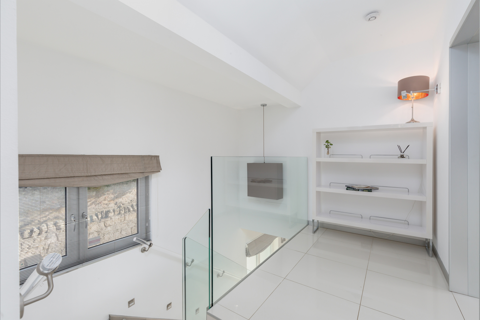 3 pisos principais mais uma escada em espiral adicional para o quarto twin no sótão - entrada ao nível do salão, escadas que descem para a área da cozinha do jardim, 2 quartos ao nível do solo e mais quarto principal no piso superior