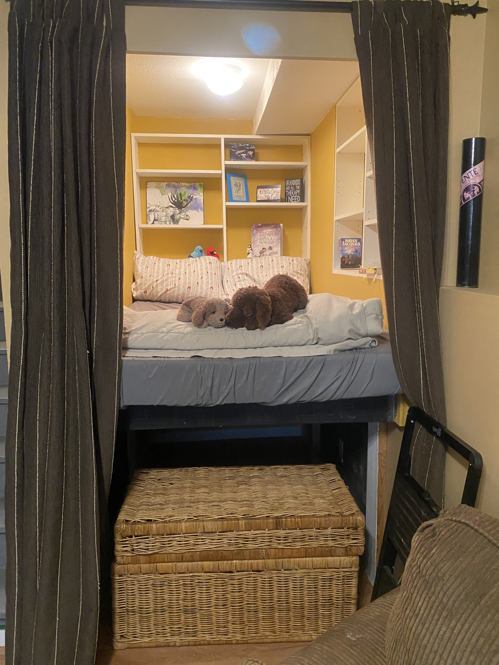 Muito básico, mas tudo que você precisa. Cozinha completa, banheiro, balcão de jantar, móveis confortáveis e lugar macio para dormir.
