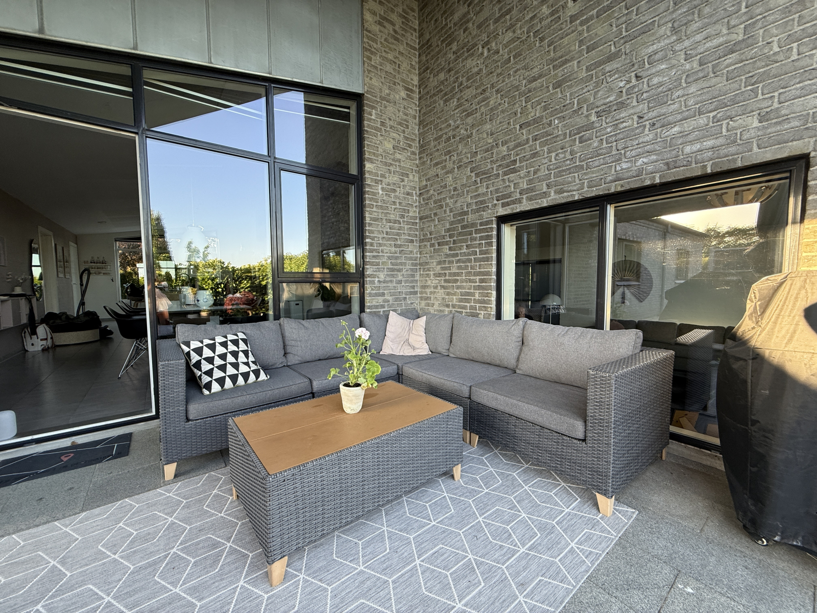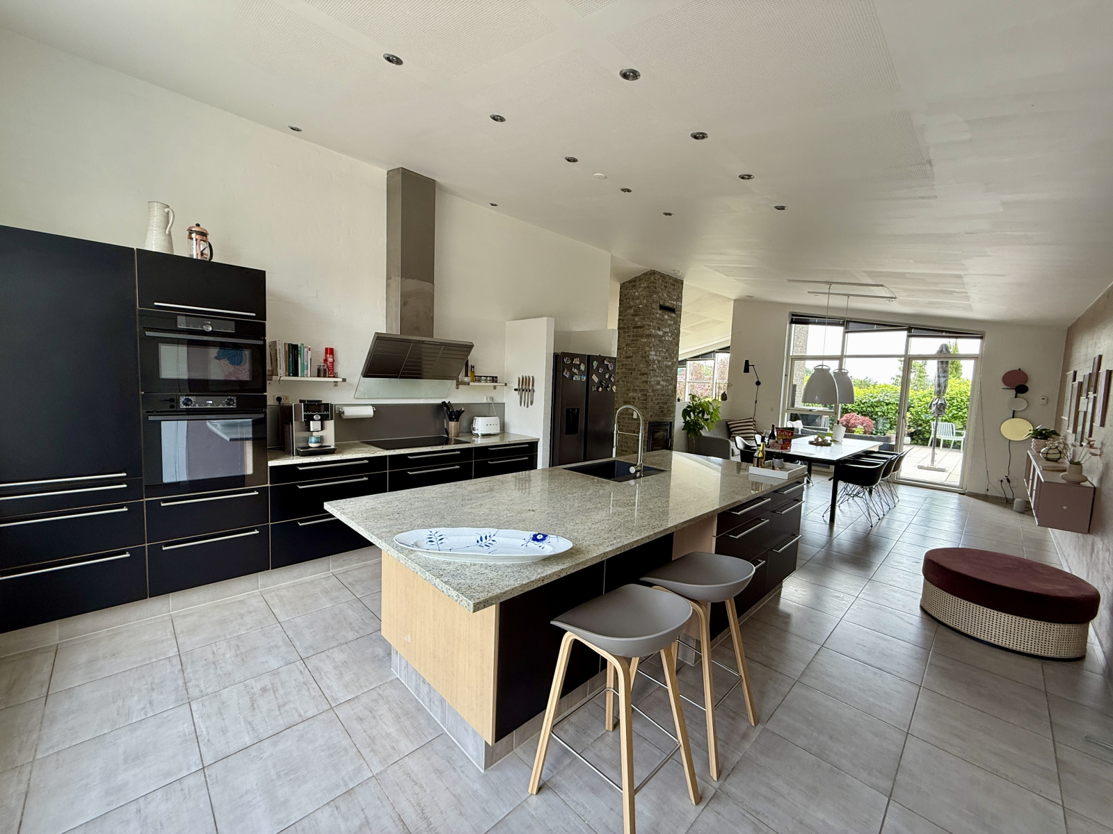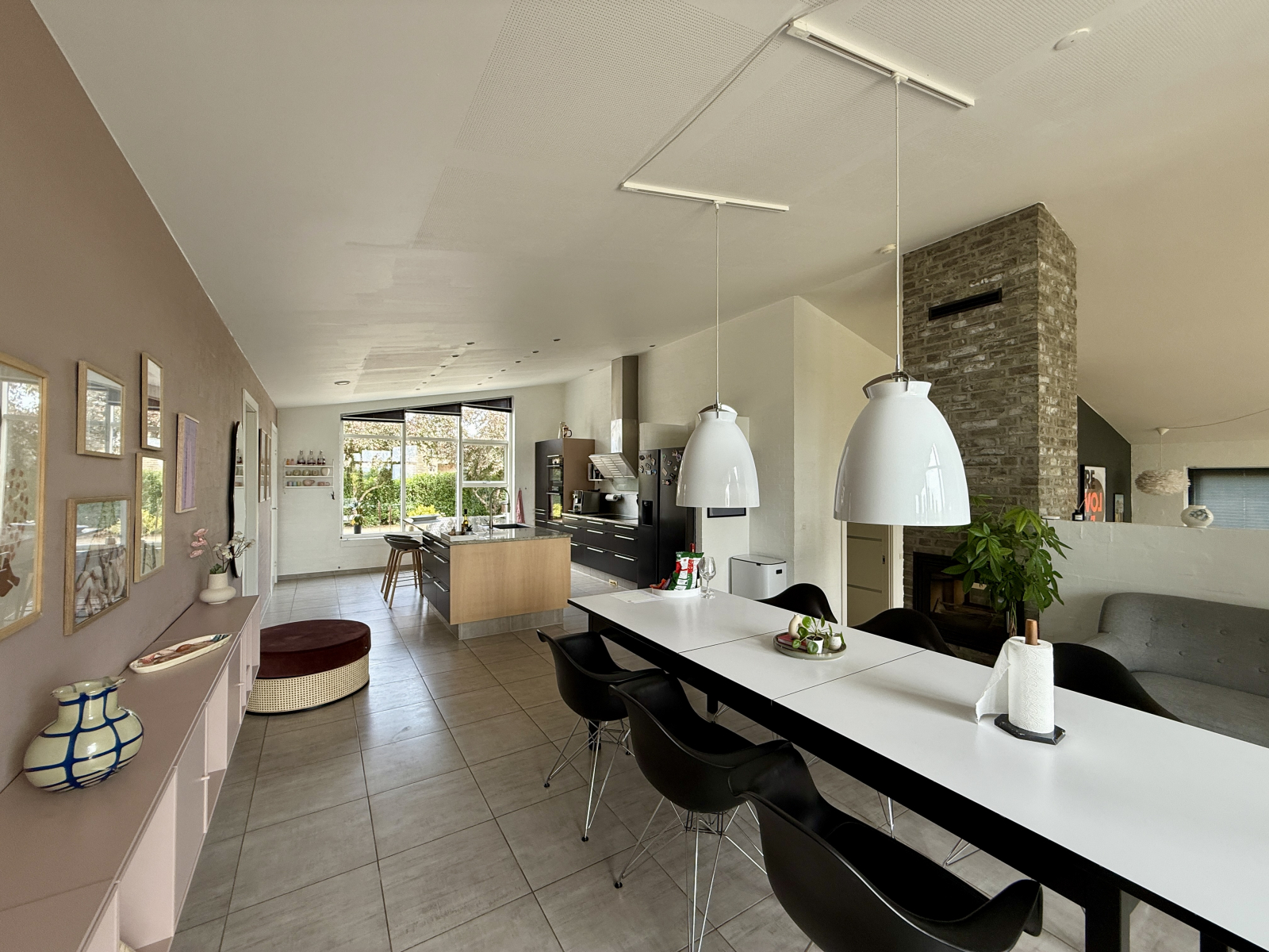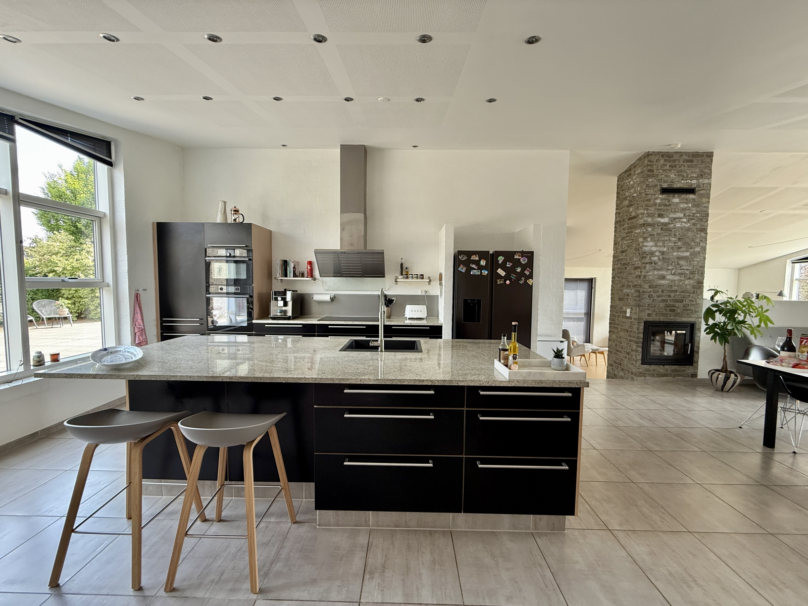 Vivemos em uma grande casa moderna com 5 quartos e um layout aberto.