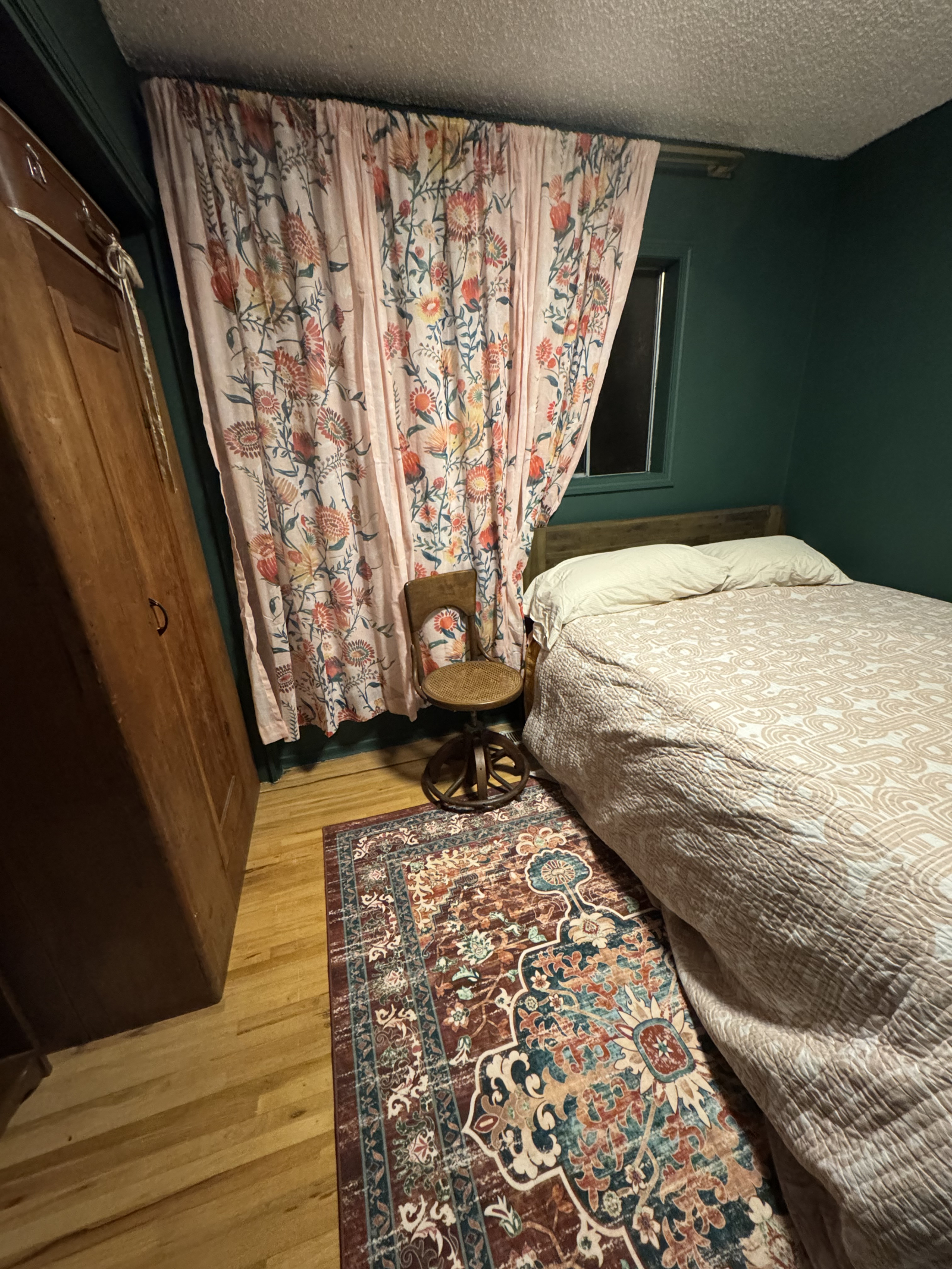 Móveis agradáveis, estilo MCM, muitas antiguidades, uma cozinha pequena, mas funcional, e lençóis de luxo.