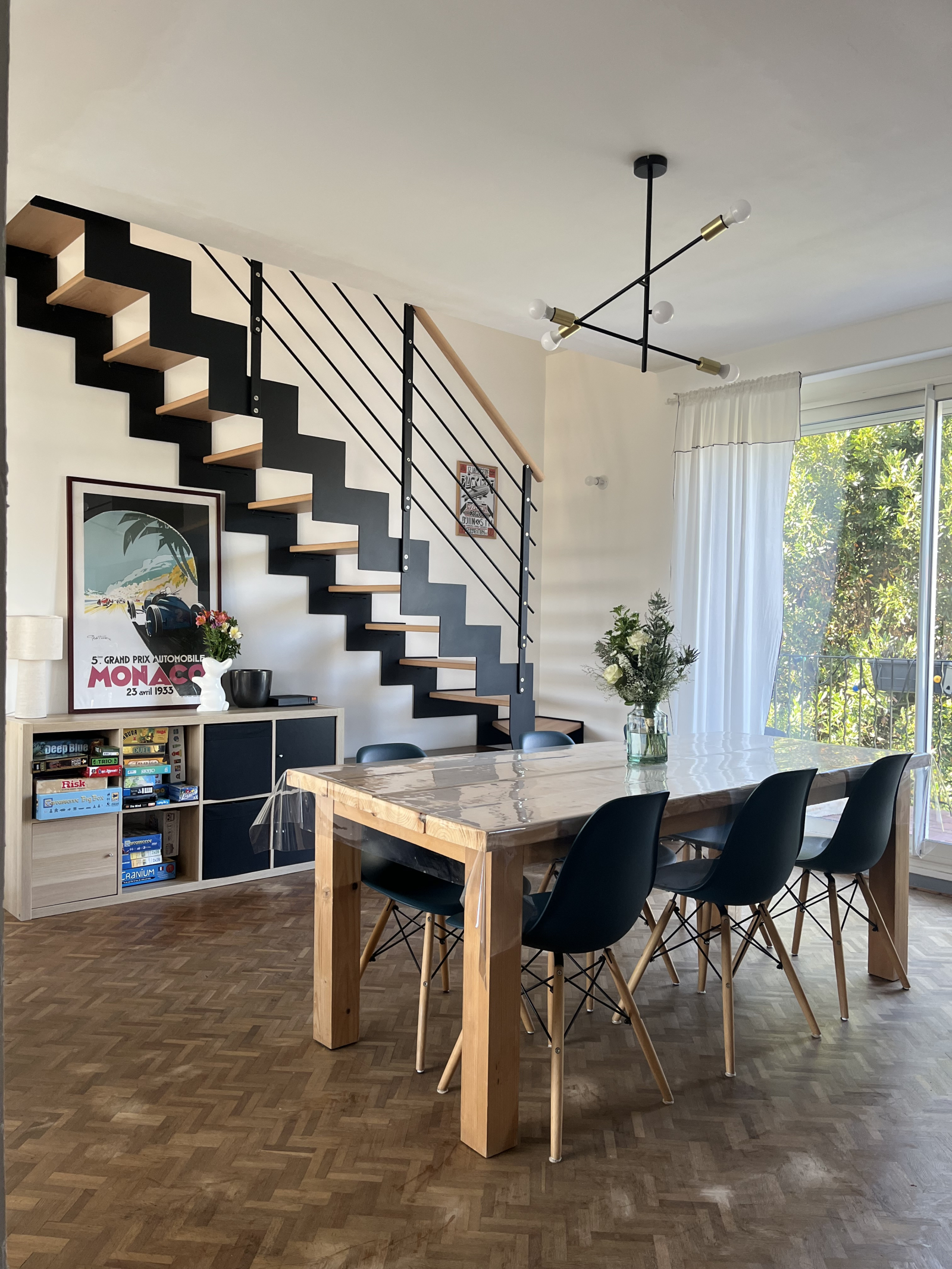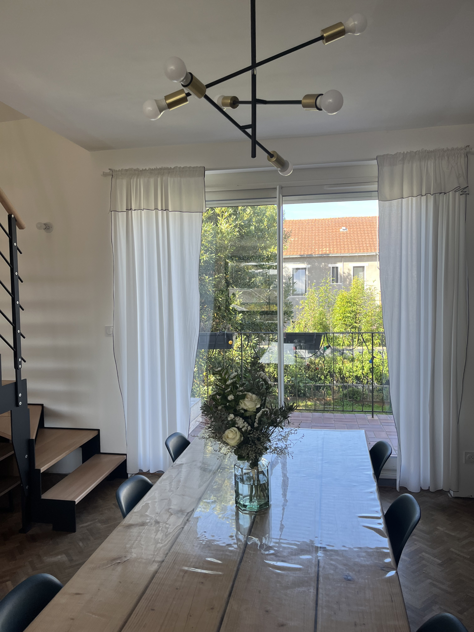A nossa casa é composta, no rés-do-chão: uma entrada, um quarto de hóspedes, uma lavandaria, dois armários e uma grande garagem. No primeiro andar: uma sala de estar/jantar, uma cozinha, uma casa de banho, o WC, o quarto principal. E no segundo andar: dois novos quartos. O jardim é acessível a partir do quarto de hóspedes no rés-do-chão, da cozinha e da sala de estar através do nosso terraço.