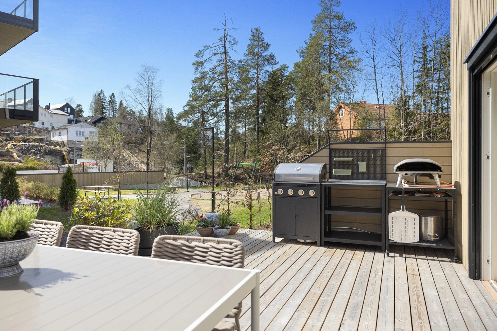 Há um grande centro comercial a apenas 5 minutos a pé da casa, Triaden. E também existem várias lojas de alimentos a uma curta distância de casa. Existem pistas de esqui cross-country a apenas 10 minutos a pé da casa, e a 10 minutos de carro você pode encontrar um centro de esqui alpino, Marikollen