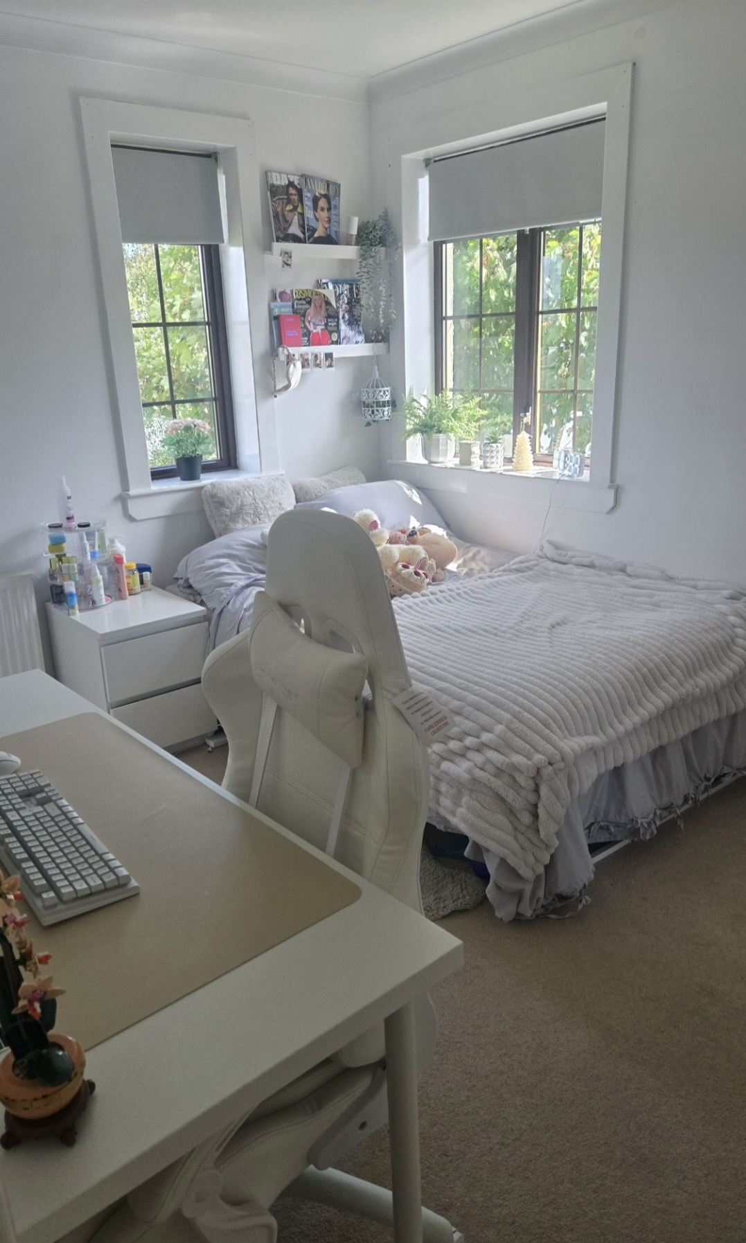 A casa tem alguns degraus que levam ao interior, com o quarto e o banheiro localizados no andar de cima. Nosso jardim fica em um nível inferior, então você precisa descer alguns degraus para chegar até ele.