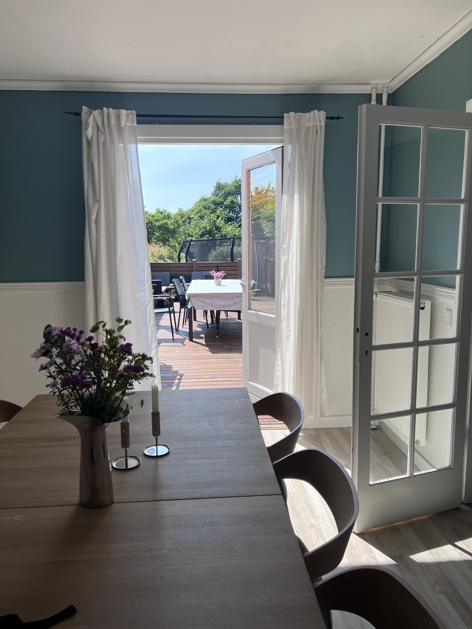 Nossa casa é um espaçoso duplex de dois andares com porão, 4 quartos e 2 banheiros - perfeito para famílias ou amigos que viajam juntos. No verão, adoramos nos reunir em nosso grande pátio, onde há muito espaço para todos desfrutarem de longos jantares ao ar livre sob a bela luz dinamarquesa. No inverno, a casa se transforma em um retiro aconchegante, perfeito para relaxar juntos e experimentar o verdadeiro hygge dinamarquês. O ônibus para em frente à porta e, em apenas 13 minutos, você pode caminhar até a estação de trem para facilitar o acesso a Copenhague. Uma mercearia fica a apenas 10 minutos de distância, tornando mais fácil se instalar e se sentir em casa.