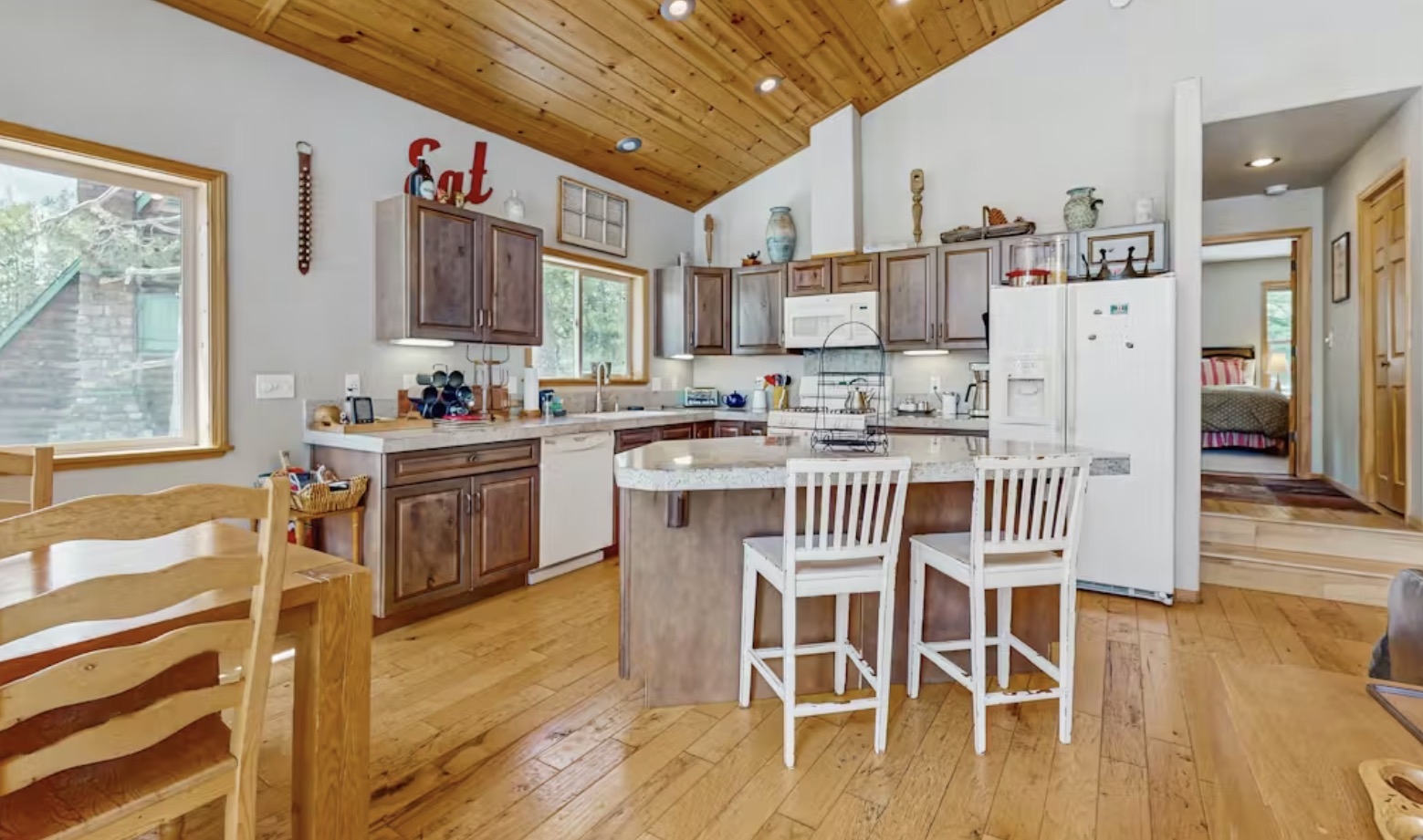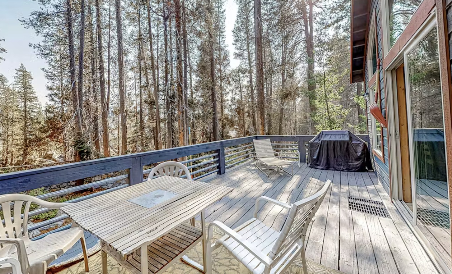 Um deck encantador aninhado entre pinheiros lodgepole, perfeito para relaxar! Durante os meses de verão, há um churrasco.
