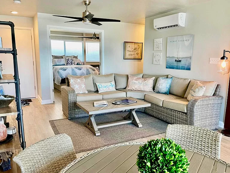 Nossa residência é um condomínio de um quarto de conceito aberto. É um condomínio fechado e tem excelentes vistas para o oceano a partir da cozinha, sala de jantar e sala de estar. Há uma grande varanda de frente para o oceano.