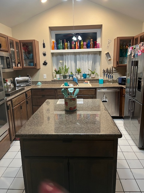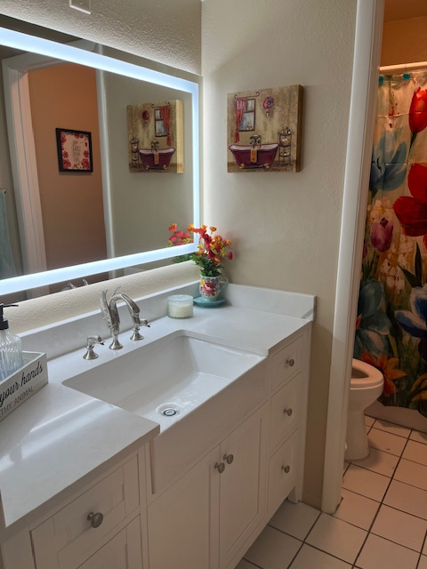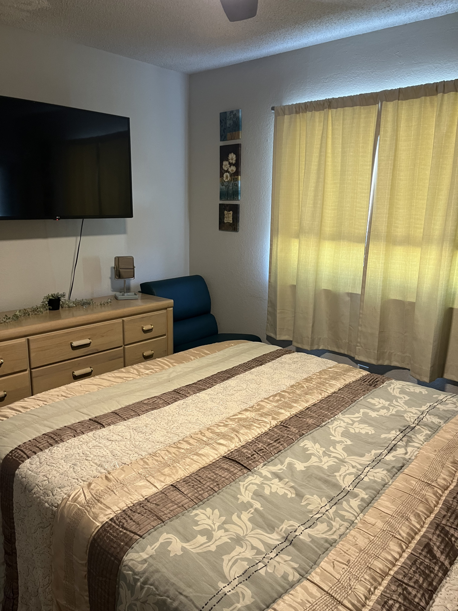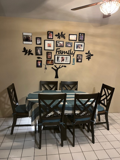Adoramos como a casa parece tão aberta e arejada – tem um teto abobadado e janelas altas para deixar a luz entrar. Estamos em um bairro residencial a cerca de 10 milhas da Strip e do centro e a cerca de 18 milhas do aeroporto. Tem um cassino local a apenas um quilômetro de distância – vamos frequentemente para noites de encontro – dentro do cassino há uma pista de boliche, cinema, um bar country western e muitos lugares para comer.