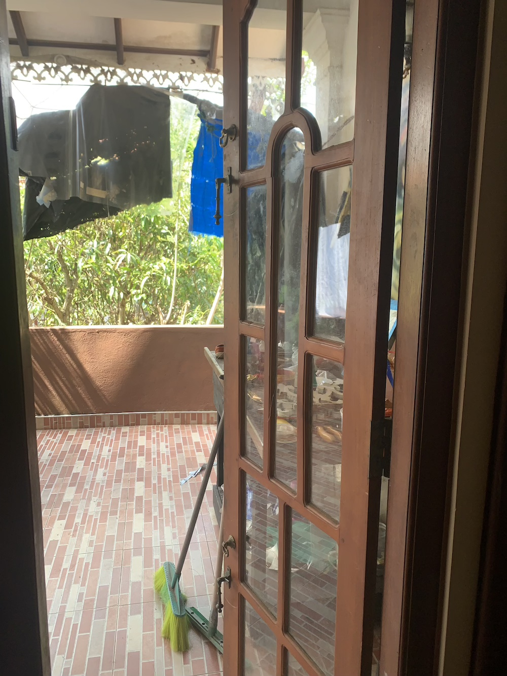 O terraço com vista para minha estrada, eu tinha cortinas longas, mas as tempestades e o ciclone recente as destruíram.