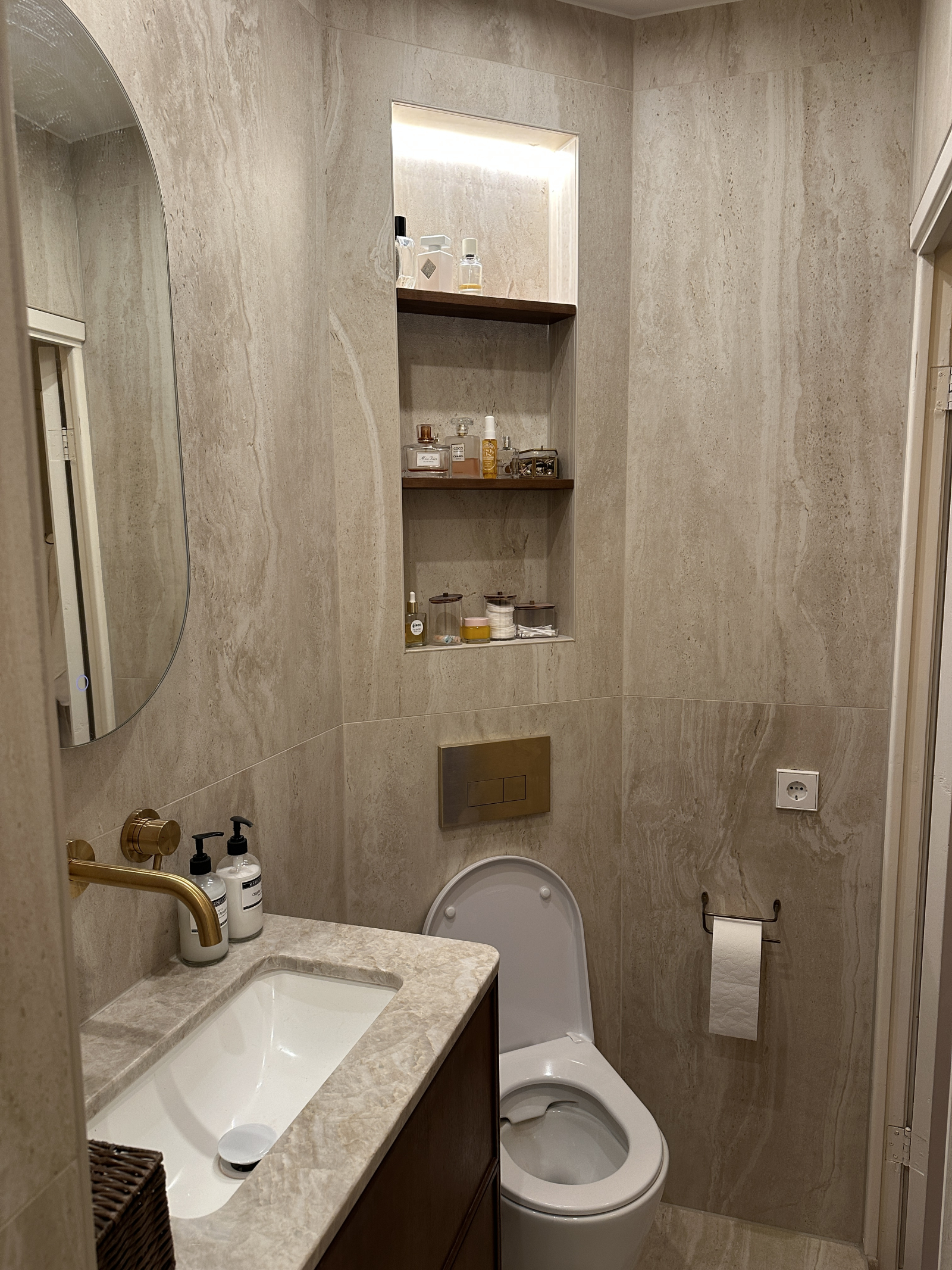 Um banheiro recém-reformado