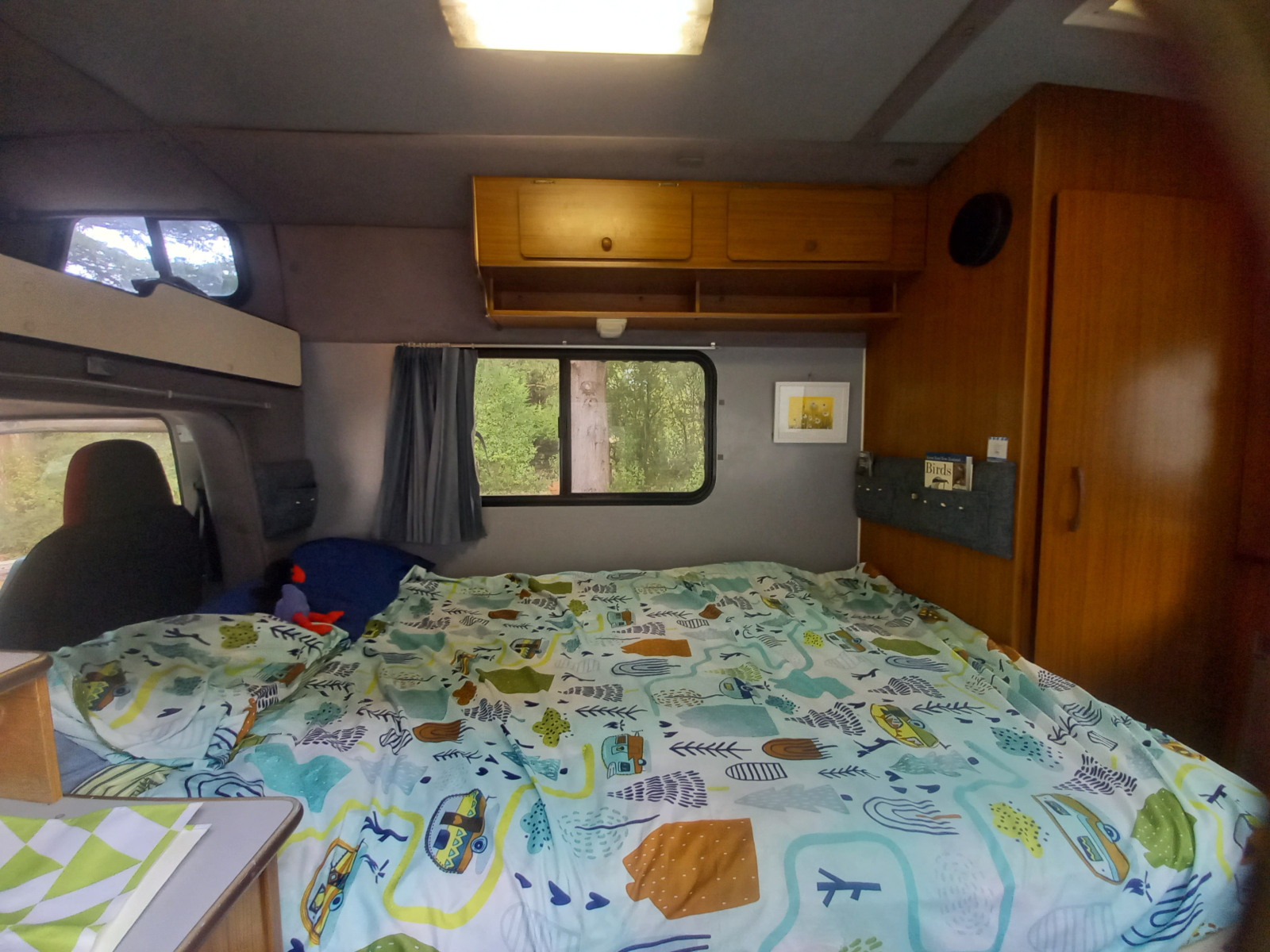 Uma campervan mais antiga ideal para duas pessoas explorarem nossa região local (South Canterbury e Otago).