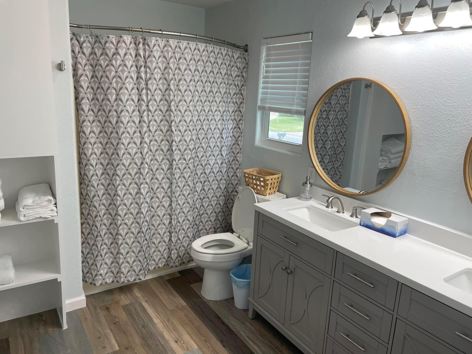 O quintal fica diretamente na água e você pode pescar no cais. Temos 5 caiaques, coletes salva--vidas, uma fogueira e uma churrasqueira a pellets para você usar. Temos uma varanda coberta linda para jantar coberto do lado de fora também.
