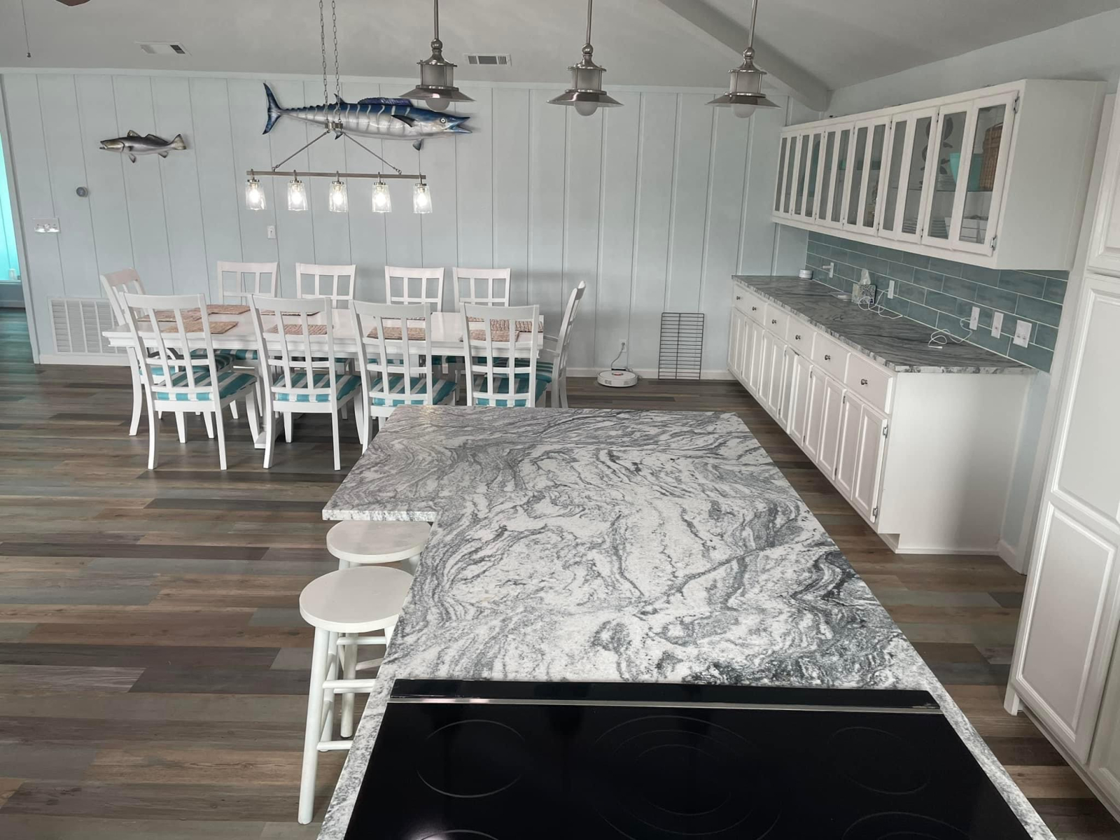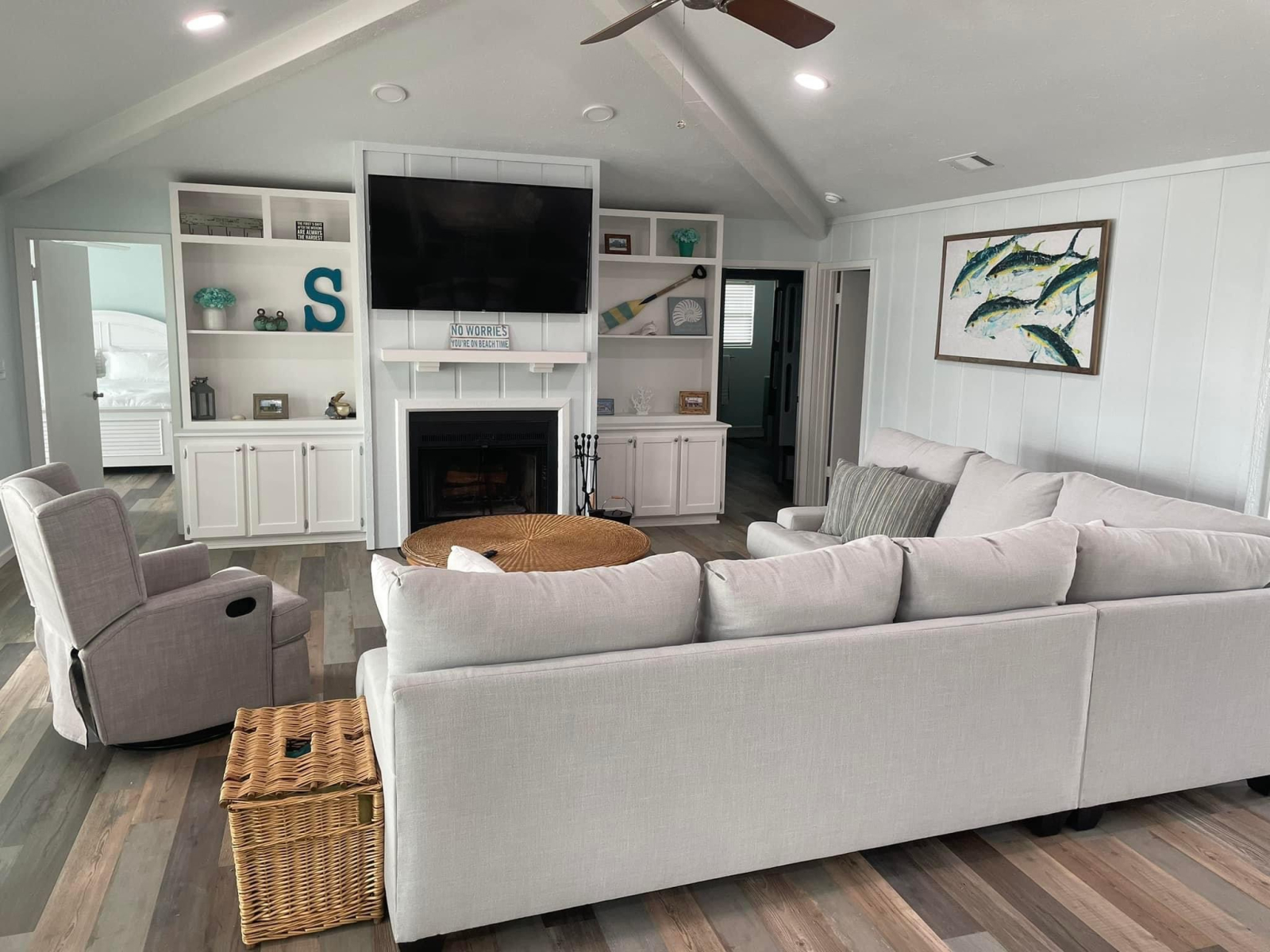4 quartos e 4 banheiros (tudo na suíte). Duas camas king size em duas suítes master. Os outros dois quartos são de dormitório (um para 6 pessoas e o outro para 4). Todos os quartos têm banheiros anexos. Nossa casa fica em uma comunidade insular e diretamente à beira da água. Também temos acesso a uma piscina comunitária e, dependendo do hóspede, podemos usar nosso carrinho de golfe durante sua estadia. A casa fica perto o suficiente de restaurantes e do supermercado para viajar de carrinho de golfe!