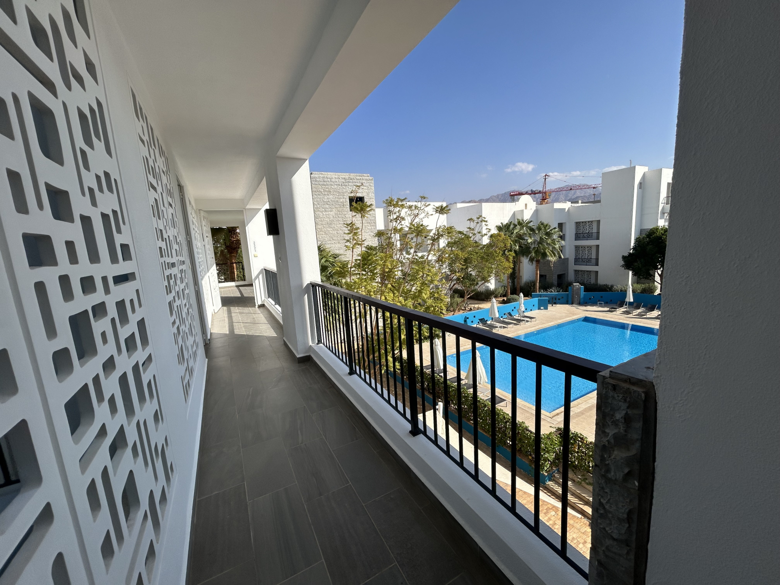 O apartamento está localizado em Ayla, uma vibrante comunidade fechada em Aqaba. É um complexo moderno e bem conservado, com piscina para os moradores, acesso a 2 clubes de praia, restaurantes, bares, loja de bebidas, lojas legais, mercado, caixa eletrônico, clínica, farmácia, campo de golfe...